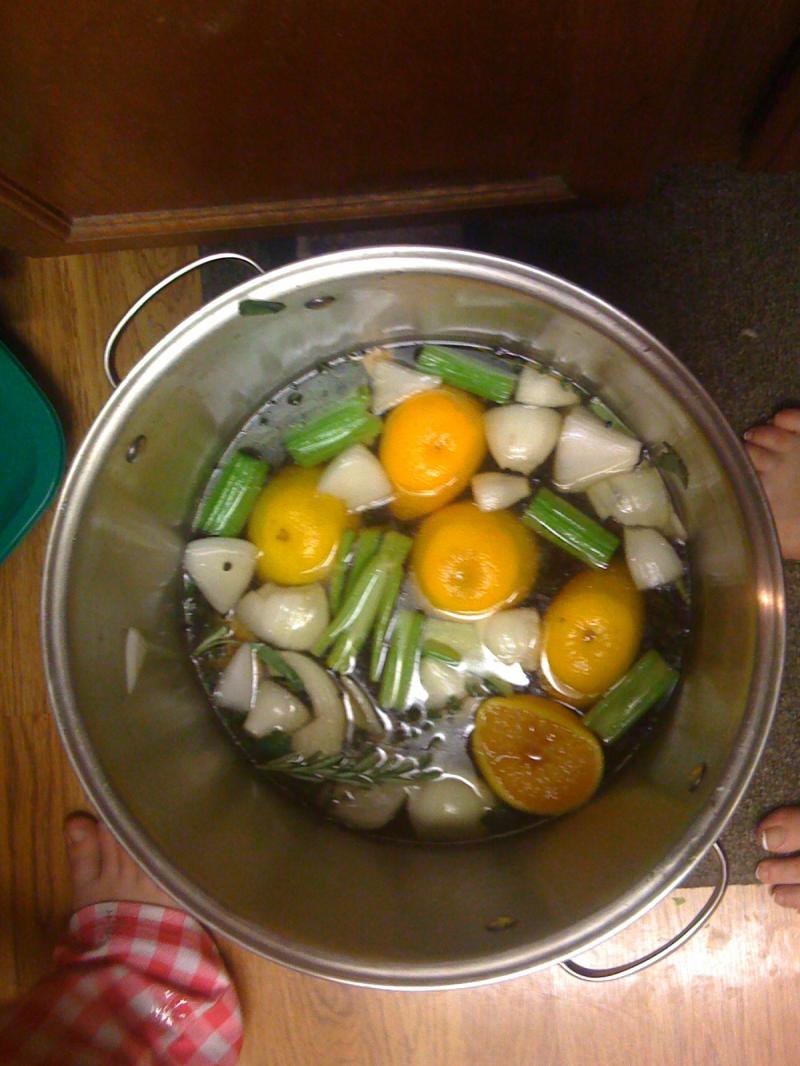 You can also add anything else you may have such as a couple of rough cut oranges, carrots, and/or celery.