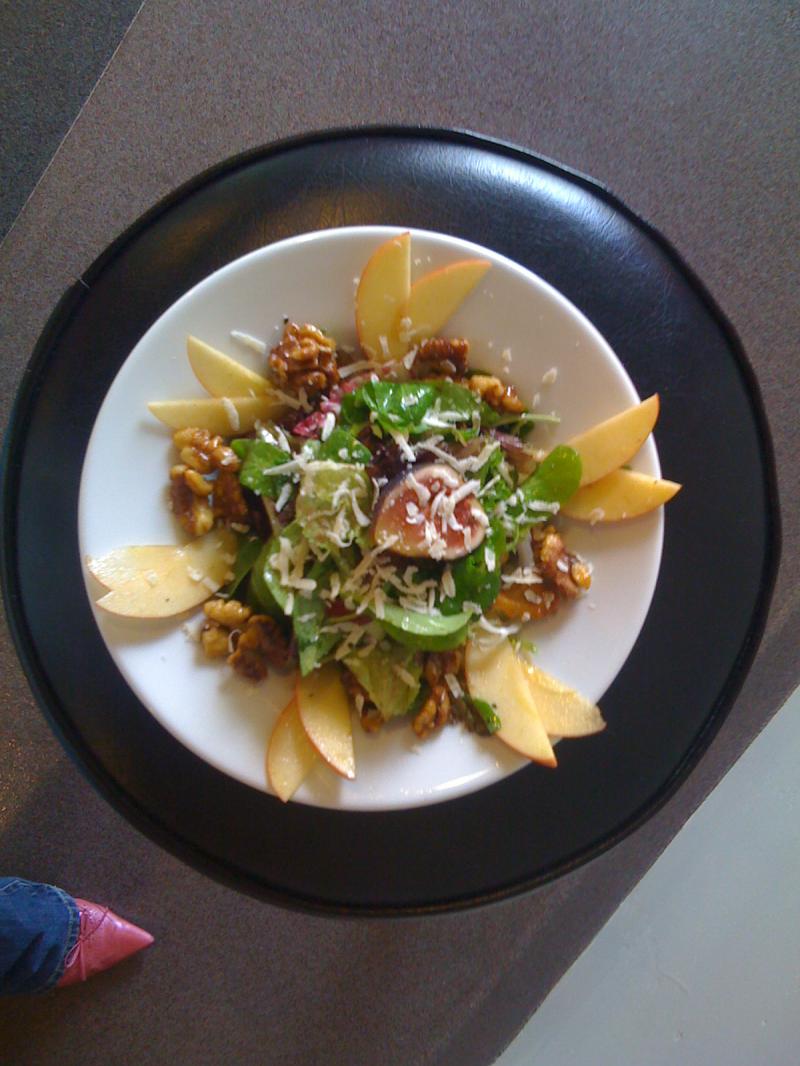 Add to a bowl of leafy greens, with croutons, add apples, figs, or any other fruit.